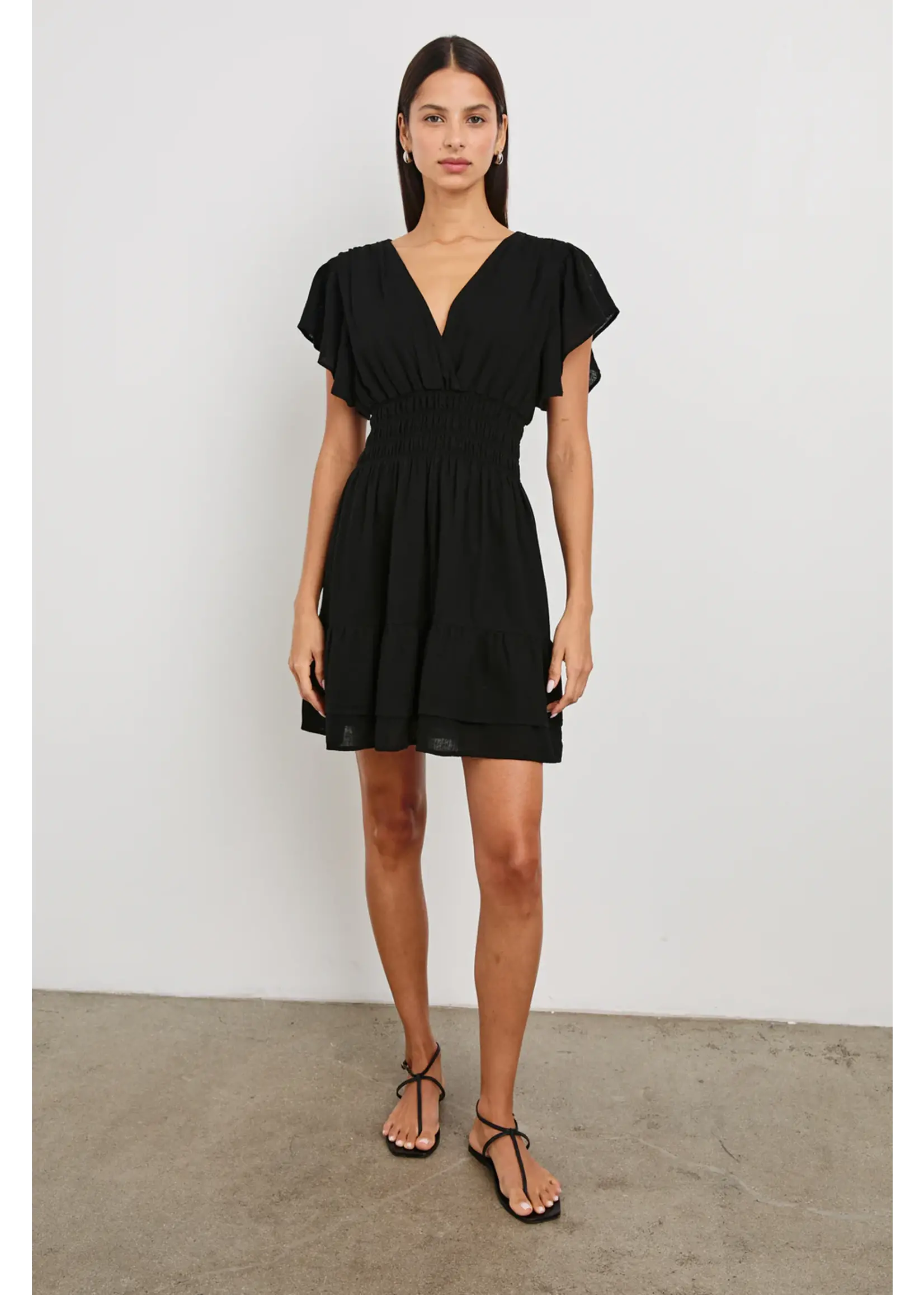 An essential sundress crafted from lightweight beach cotton. The Kimora has a classic hourglass silhouette with a ruched waist, customizable back-tie and flutter sleeves.