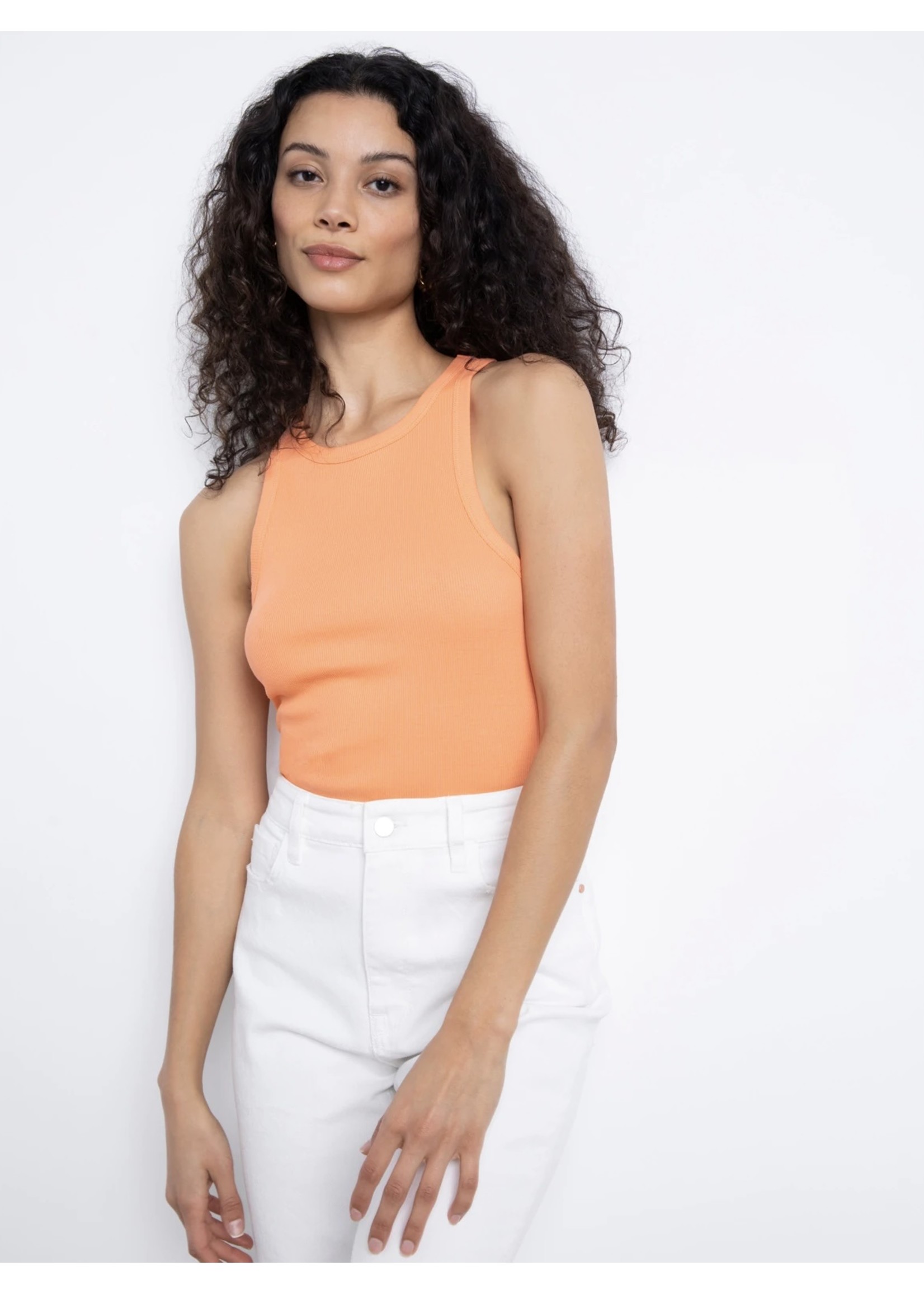 A soft halter tank cut from a ribbed cotton fabric that hugs your curves with just a touch of stretch.